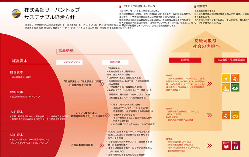 主要取引金融機関との連携を強化し、「サーバントップサステナブル経営方針」を発表